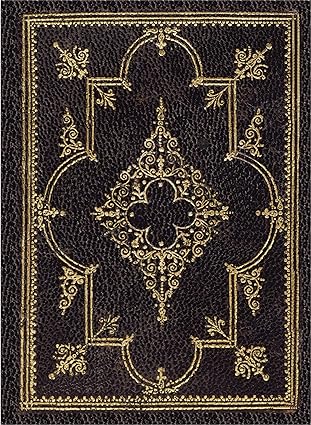 Large journal in obsidian. Embossed cover with gold foil and pages lined in gold foil. 160 high quality pages that are lightly lined. Ribbon bookmark to keep your place. 6-1/4'' wide x 8-1/4'' high.