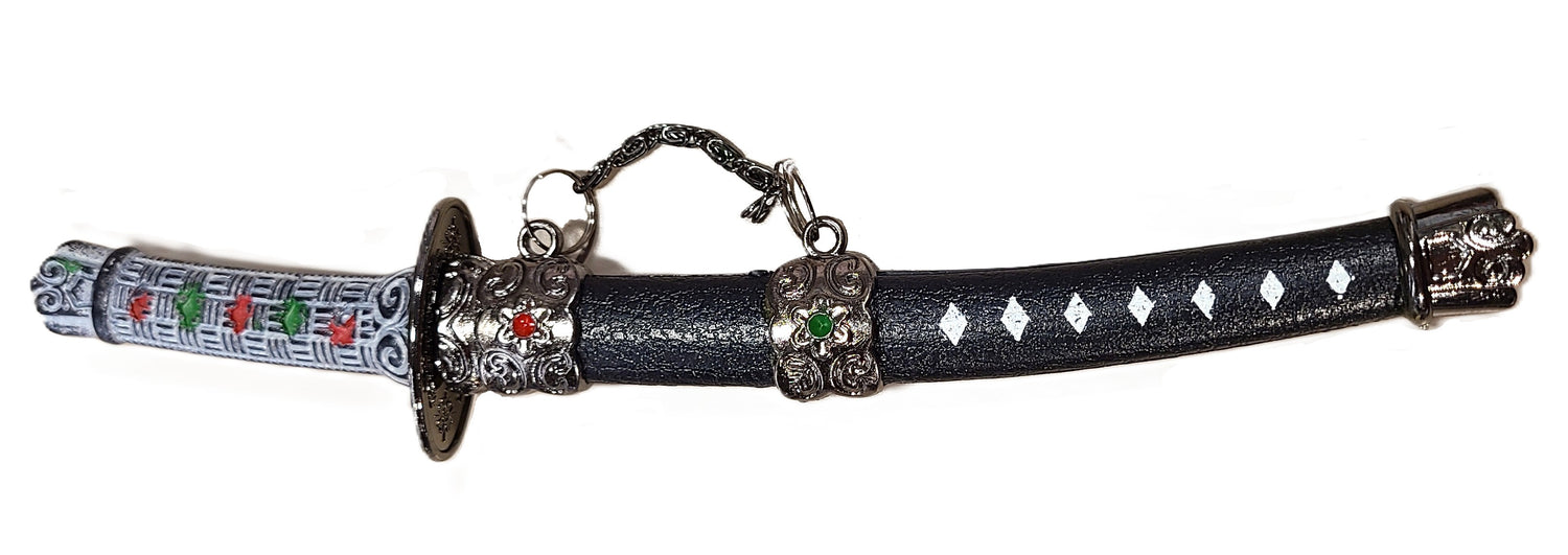 Open your mail with authority with this katana sword letter opener! Your choice of red or black. The blade is metal with a plastic handle and saya (sheath). The entire piece is 8 1/4" long.