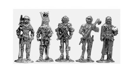 Medieval Knights five figurines and gameboard similar to checkers. Features five knights handcrafted from lead-free pewter from different ages in history. Knights stand about 1 3/4" high.