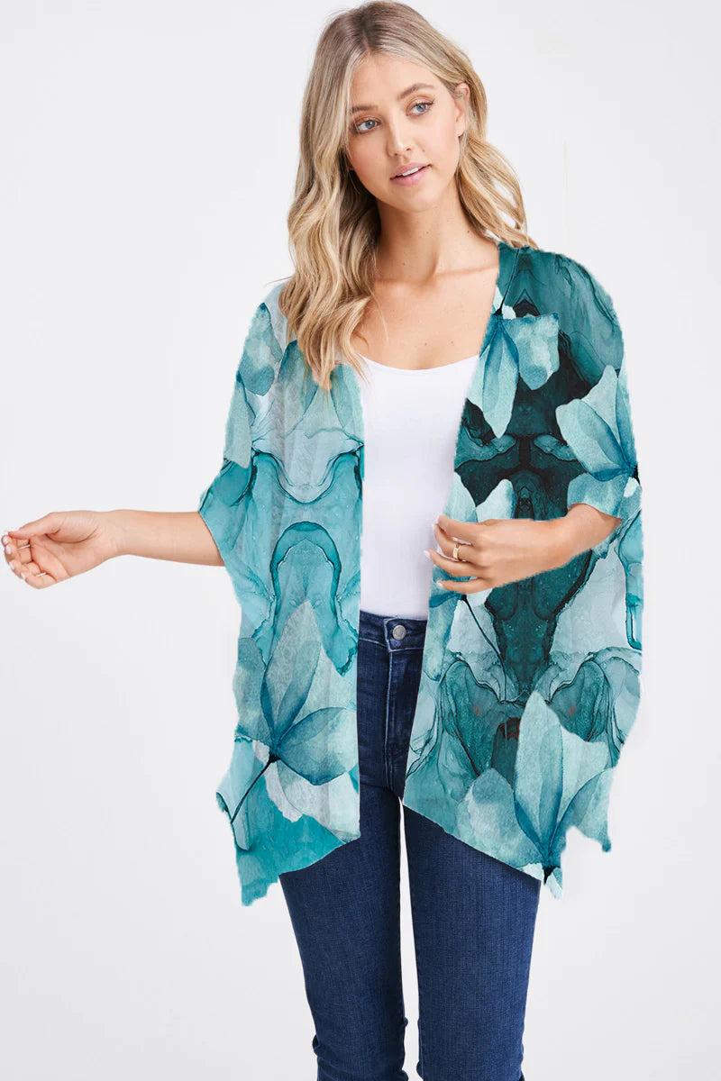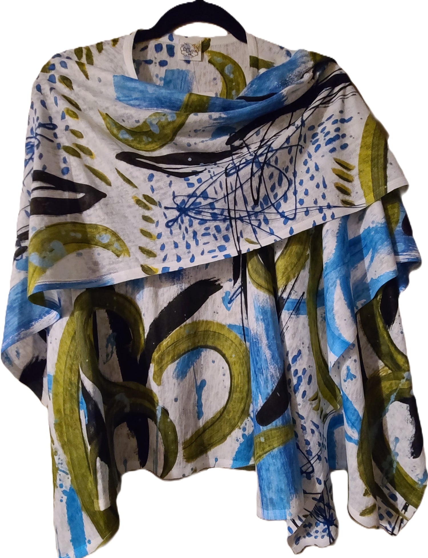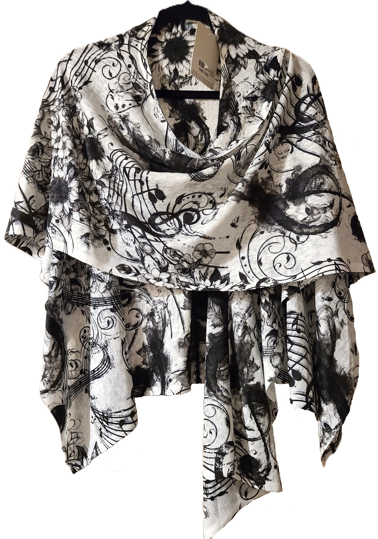 100% Polyester, a medium weight silky feel. Machine wash cold, line dry.